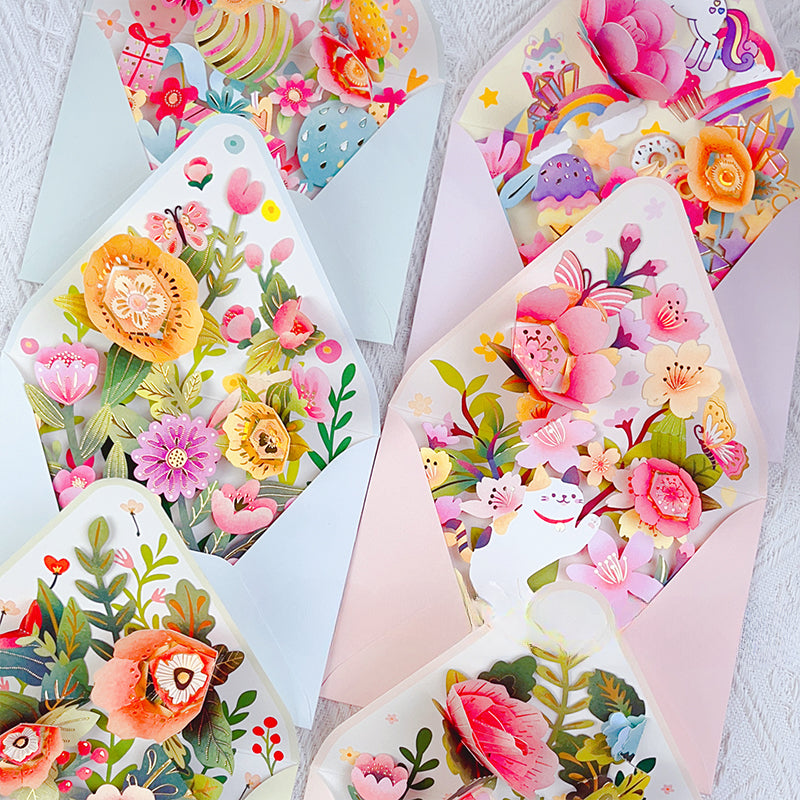 Coffret cadeau de fête de vacances avec enveloppe créative et fleur 3D, lot de 6