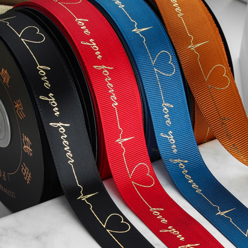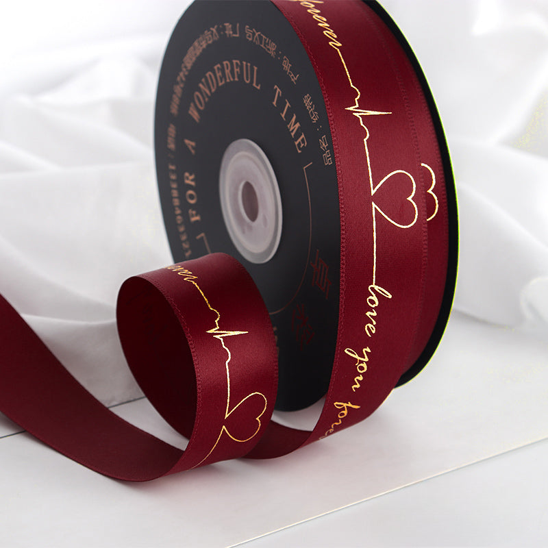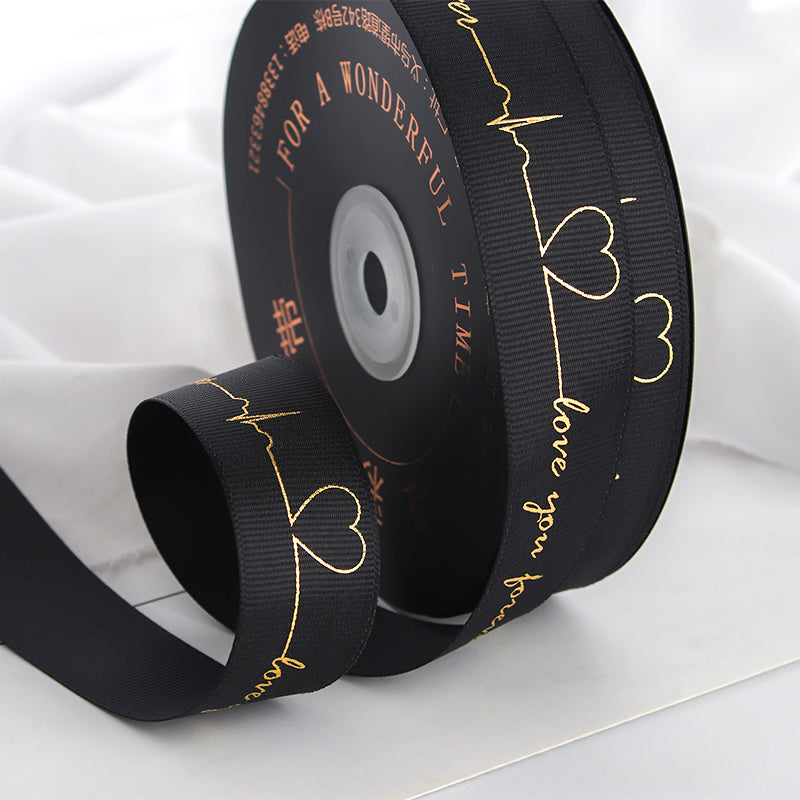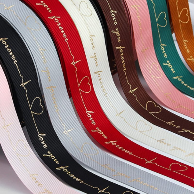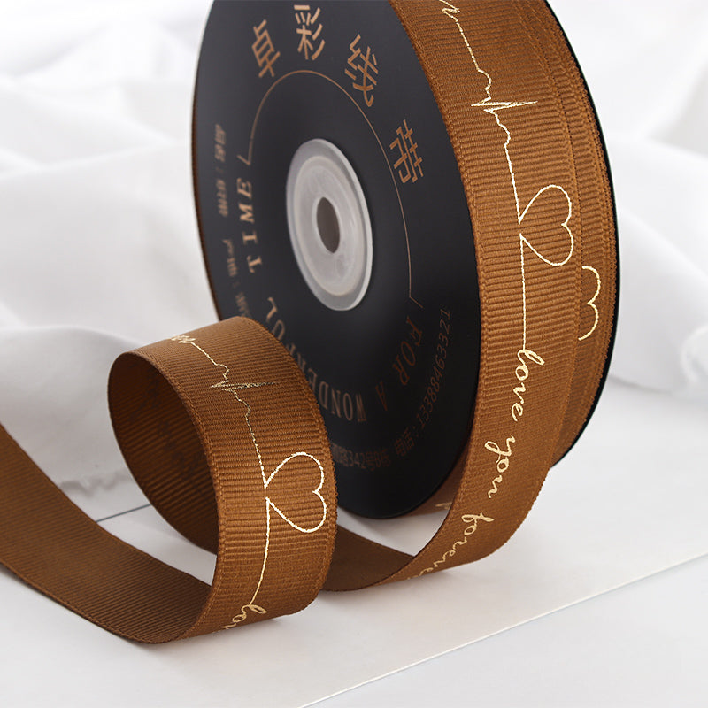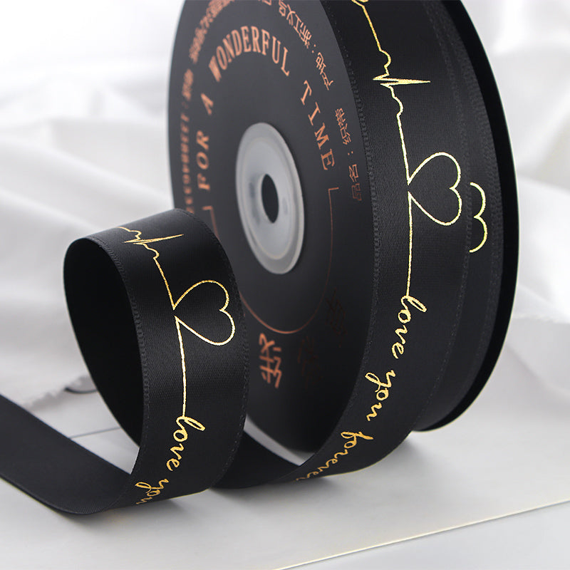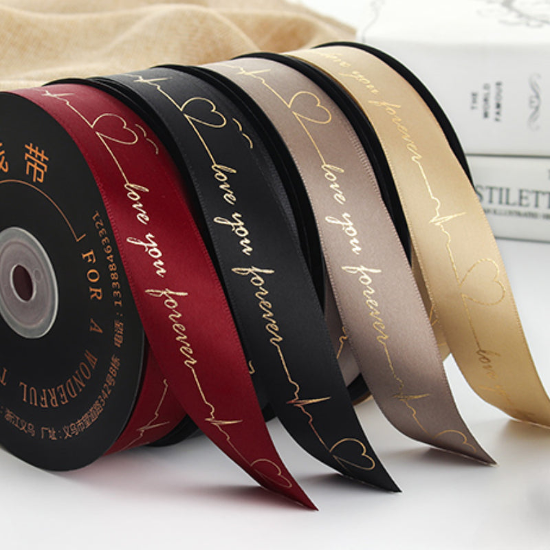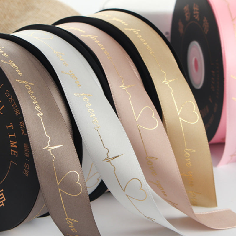 Ruban de battement de cœur estampé doré pour emballage de gâteau, pâtisserie, fleur, cadeau (2,5 cm x 45 mètres)