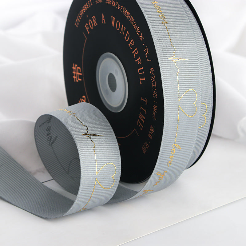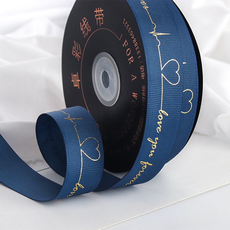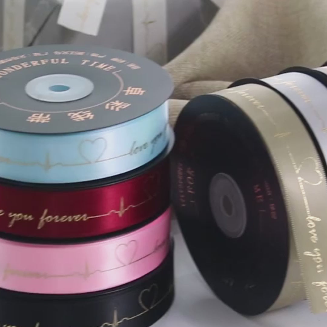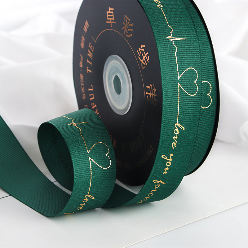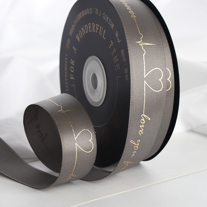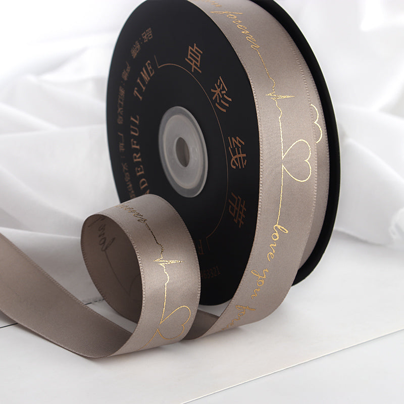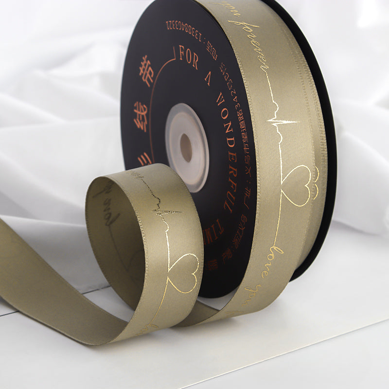 Ruban de battement de cœur estampé doré pour emballage de gâteau, pâtisserie, fleur, cadeau (2,5 cm x 45 mètres)