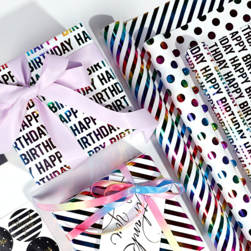 Papier d'emballage cadeau estampé doré Papier d'emballage pour boîte cadeau d'anniversaire