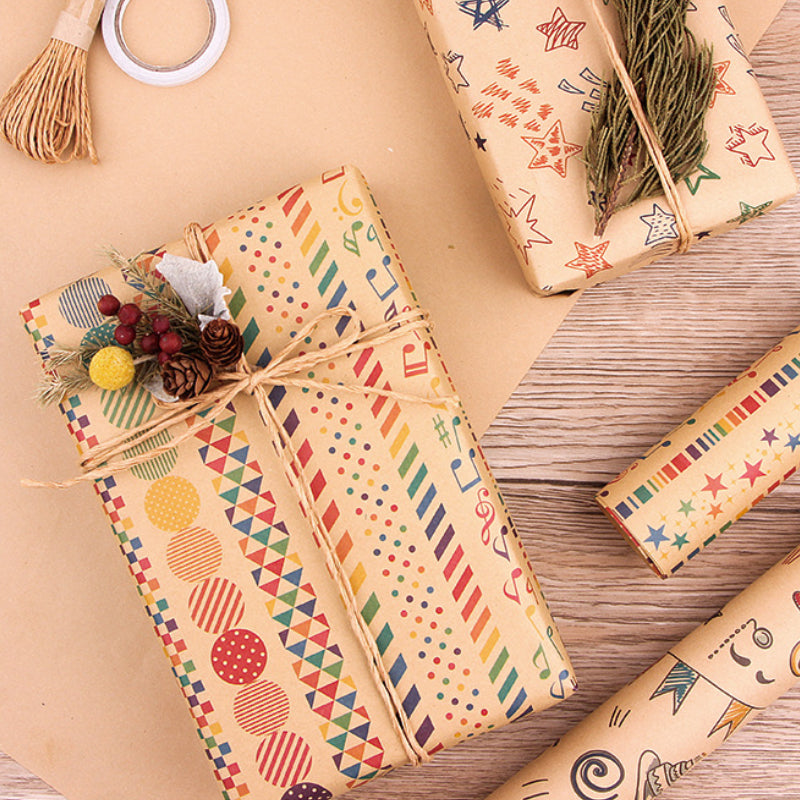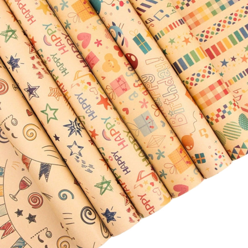 Papier d'emballage cadeau en forme d'étoile pour fête d'anniversaire, ballon, papier kraft