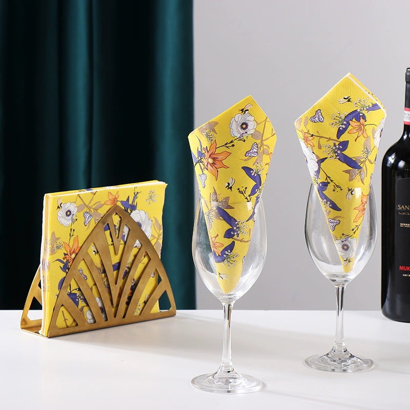 Serviettes de table à imprimé floral jaune Serviettes de fête de fin d'année Papier découpage